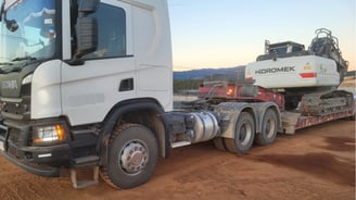 Transporte de maquinarias con camiones tolvas y cama baja.
